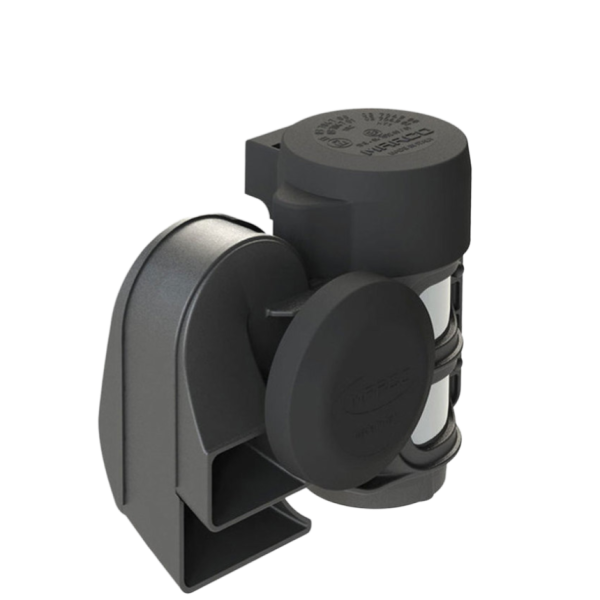 İki ayarlı ses elektropnömatik korna. Entegre kompresör, basmalı düğmeye basıldığında anında ses çıkışı sağlar. Bu nedenle hava hortumu gerekmez. Güçlü ses. Tek sabitleme noktasıyla kolay kurulum. 12V ve 24V seçenekleri mevcuttur.